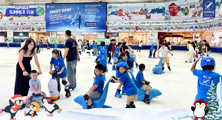 Trong cái nóng oi ả của mùa hè, việc được vui chơi trên mặt băng mát lạnh đã mang lại cho các em một cảm giác hoàn toàn mới. Tại sân trượt băng Royal City, các bạn nhỏ ISPACE có cơ hội trải nghiệm bộ môn thể thao vừa thú vị vừa thử thách.